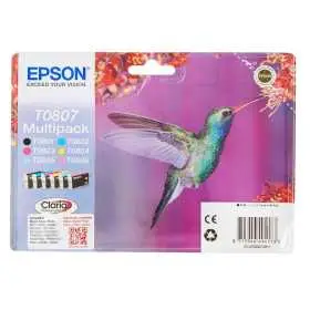 Epson T0807 Noir couleur Colibri Pack de 6 Cartouches d'encre d'origine